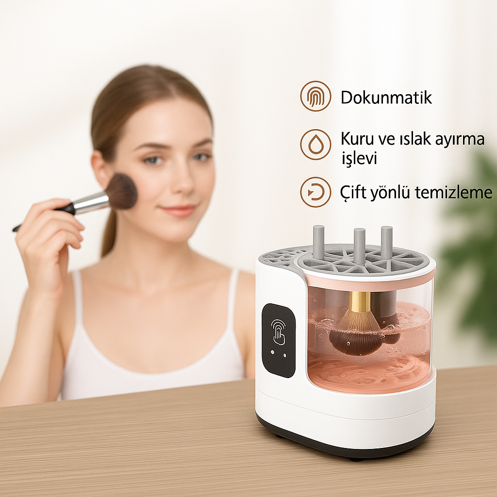 👉 Tüm makyaj fırçalarıyla uyumludur. Küçük, orta ve büyük boy fırçalar rahatça temizlenir.